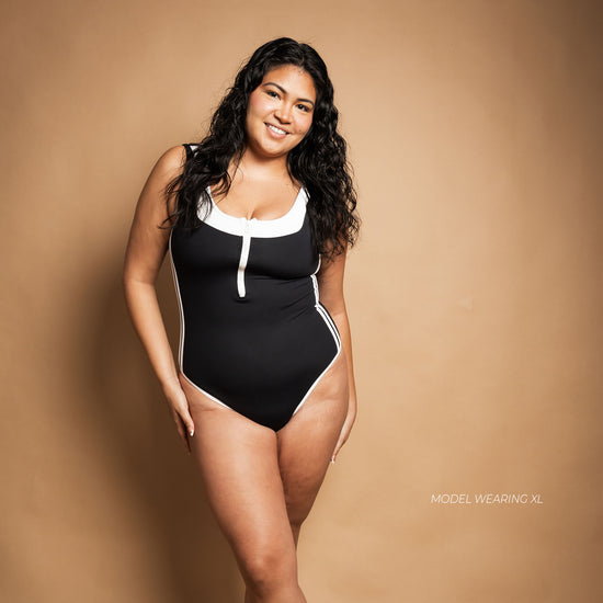 The Ipanema one-piece was thoughtfully designed to celebrate every body, especially our curvy ladies, with a flattering fit, stylish coverage, and all day comfort. We have reimagined traditional designs to create a silhouette that enhances your shape without compromising on style or ease. Featuring a front zipper for a customizable open or closed look and finished with a striking white accent trim at the back and on the sides, this suit beautifully highlights your curves, especially the lower half for a standout finish that’s anything but basic.